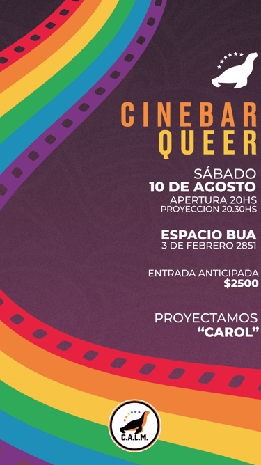 No te pierdas la proyección de "CAROL" en CINEBAR Queer, donde además vas a poder disfrutar de un ambiente amigable y compartir un buen rato con amigxs.